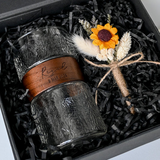 Engraved Mini Wood Grain Thermos (White/Black/Brown)