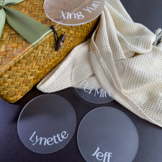 Personalised Frosted Acrylic Wedding Door Gifts/Place Cards (Round)