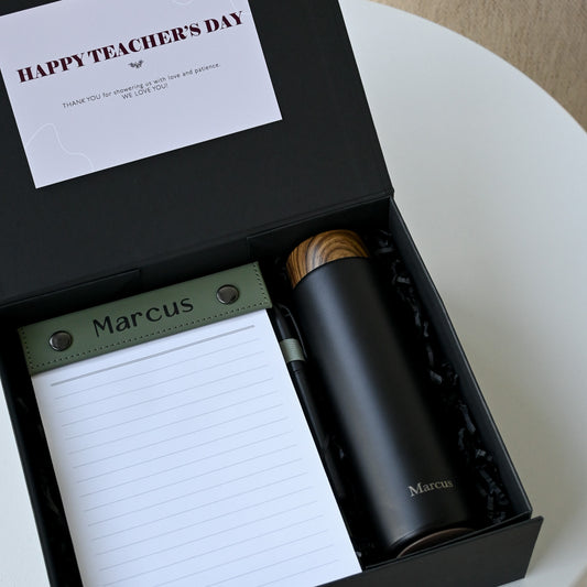 Engraved Wood Grain Thermos (White/ Black) - Teachers' Day Edition (It takes a big heart to shape little minds)