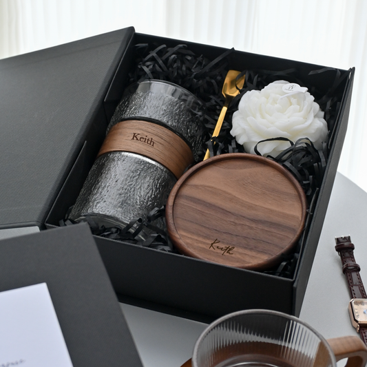Engraved Coffee Mug with Birch Wood Handle (Black/Off-White)
